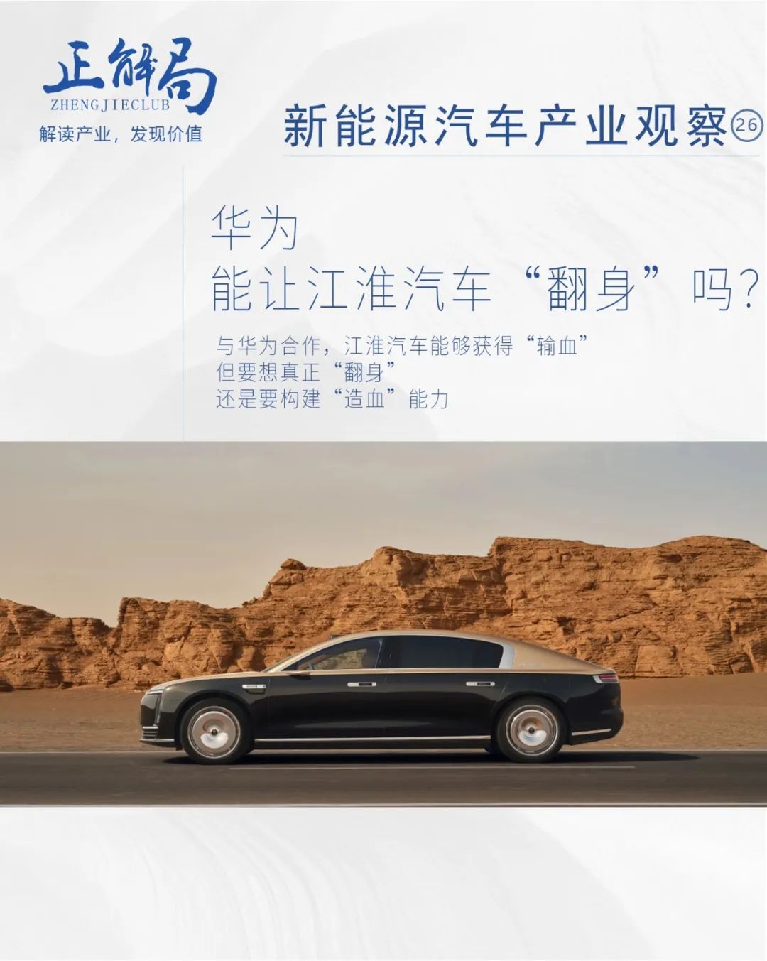 在正解局看来,与华为合作,江淮汽车能够获得“输血”,但要想真正“翻身”,还是要构建“造血”能力。