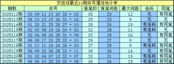 上期开奖:福彩双色球第2025121奖号为:06 08 10 25 29 30 + 08,红球和值为108,最大间距为15,奇偶比为2:4,三区比为3:0:3。