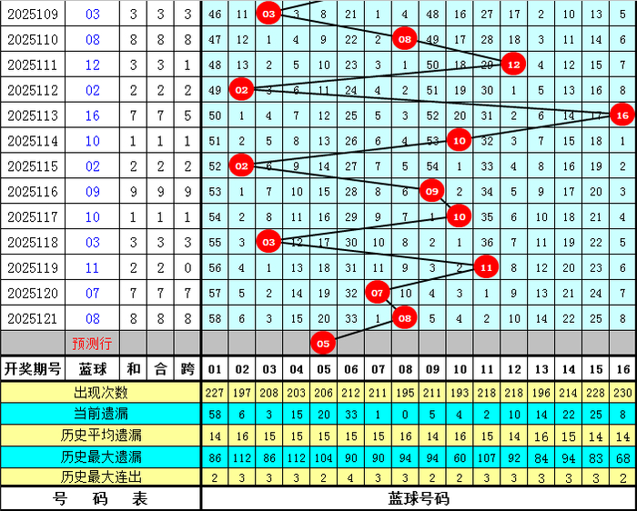 五码蓝球:01 02 05 06 08