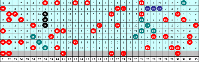 2、凤尾分析:最近十期凤尾号码分布在26-33区间,走势比较集中,凤尾012路为4:2:4,1路奖号走冷,本期关注0路凤尾号码,参考30。
